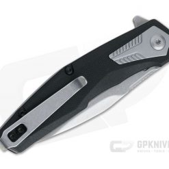 The Handle:Â Black G10 scales mounted to stainless steel liners are contoured on the edges for comfort and sport diamond texturing on the flats for excellent security in the hand. An open back construction reduces weigh and makes for easy maintenance. The AXIS lock provides true ambidextrous operation and some of the most secure lockup in the industry.