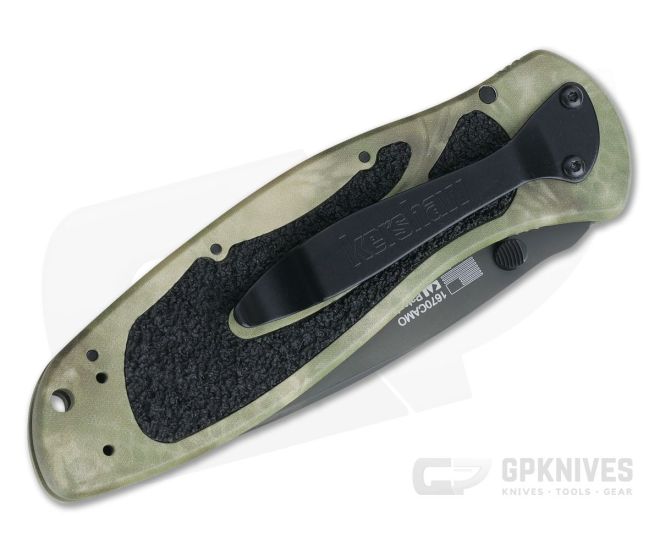 For over a decade the Ken Onion designed Kershaw Blur has been a highly recognized as a staple in the knife world. Kershaw now offers this timeless SpeedSafe assisted design with a razor sharp, plain edge 14c28n Sandvik stainless steel blade with black Cerakote coating and Stalkland camo anodized aluminum handles and Trac-Tec inserts.