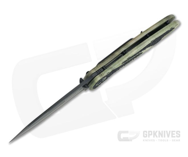 Handle:Â Stalkland camo anodized aluminum scales are equipped with high traction black Trac-Tec inserts making it a great choice for slick conditions or use while wearing gloves. The Stalkland camo pattern was designed by two former military snipers, based on the principles of concealment learned during their service in the military. Paired with the black coated blade, the camo anodization makes for a very discreet knife in both use and carry. A clean, contoured design with minimal jimping and a neutral design offers comfort for everyday use and carry. Dual, inset stainless steel liners support the scales and house the SpeedSafe assisted mechanism while one liner forms the locking mechanism for smooth reliable operation.