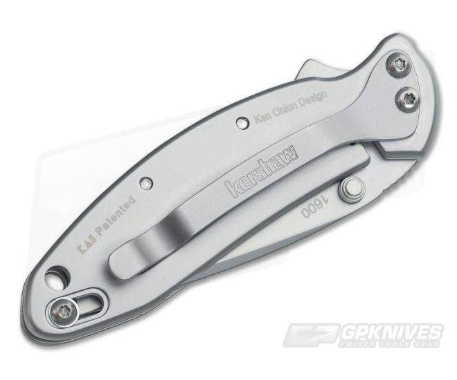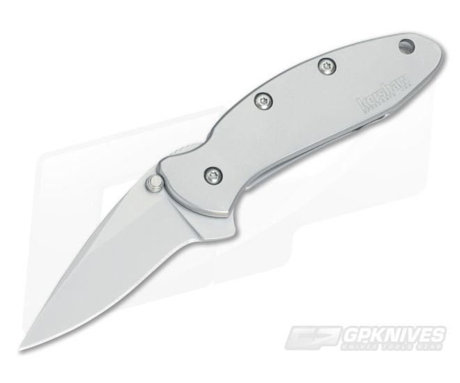 Kershaw Chive Framelock folder with plain edge 420HC stainless steel blade and 410 stainless steel handle. Dual thumb studs and flipper for easy opening. SpeedSafe assisted opening with frame lock and safety tip lock. Stainless steel pocket clip. Designed by Ken Onion.