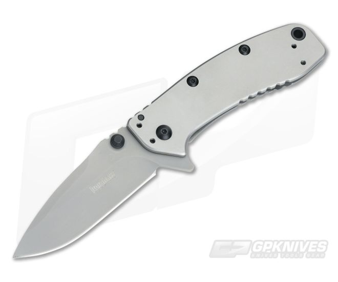 Both have been given a matte gray, bead-blasted finish for that Kershaw look and feel. Features an integral flipper and studs for opening, blackened hardware, frame lock with lockbar stabilizer and four-way deep-carry pocket clip.