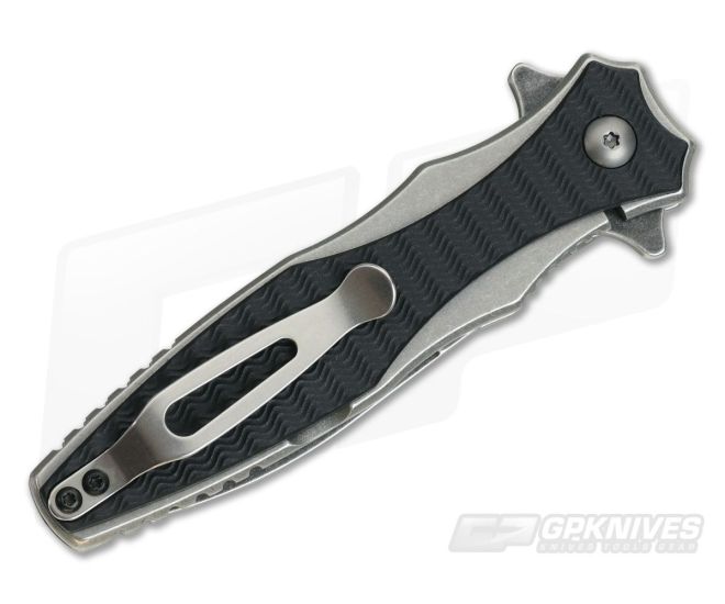 The Handle:Â Symmetrical, stonewash finished stainless steel handles add to the dagger-like look of the Decimus and give a nice heft in the hand. One side forms a robust integral frame lock for secure operation of the knife when in use. Glass-filled nylon overlays are textured for added security in the hand and a more custom look. The Decimus is rounded out with an open, barrel spacer construction and Hinderer style, reversible, tip-up pocket clip for carry.