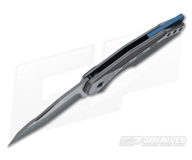 The Handle:Â A super cool futuristic machined steel handle frame features a two-tone gray PVD coating with satin flats. Grippy grooves and a high-arched scoop on the bottom of the handle provide a superior grip. Cool blue coated tip up pocket clip and backspacer accent the Malt.Â