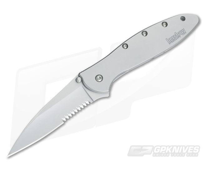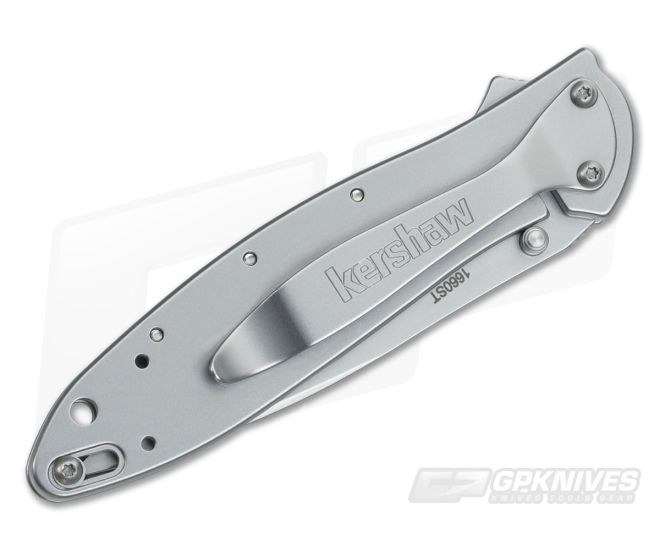 Kershaw 1660 Leek with partially serrated blasted Sandvik 14C28N stainless steel blade and 410 stainless steel handle. Dual thumb studs and flipper for easy opening. SpeedSafe assisted opening with frame lock and safety tip lock. Stainless steel pocket clip. Designed by Ken Onion.
