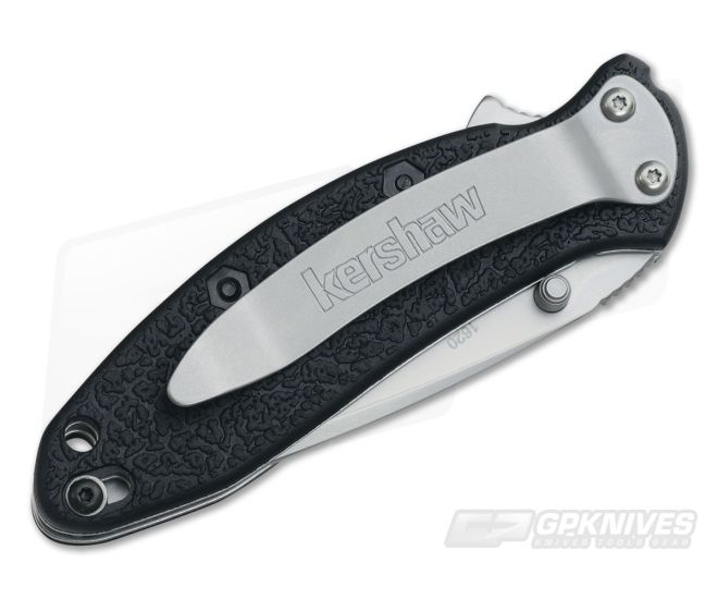 Kershaw Scallion Assisted flipper in classic Black with plain edge 420HC stainless steel blade and textured glass-filled nylon handle. Dual thumb studs and flipper for easy opening. SpeedSafe assisted opening with liner lock and safety tip lock. Stainless steel pocket clip. Handy EDC for your pack. Designed by Ken Onion.