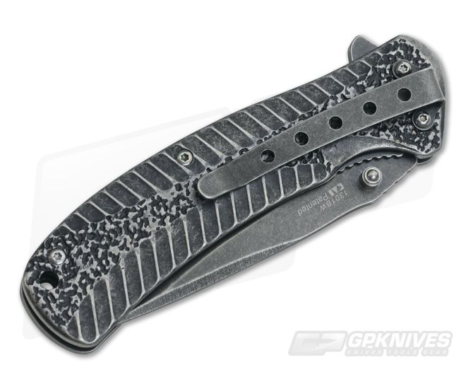 The Kershaw 1301BW Starter Flipper has a complex textured and machined design that is not just for looks. The all stainless steel handle with liner lock keeps the blade securely open but allows for easy closing. The drop point blade opens quickly with aid of the SpeedSafe technology by either the flipper or thumb stud. Full black oxide coating provides protection for the knife and BlackWash finish helps hide any new scratches you may add during everyday carry. Features an integral flipper and studs for opening, liner lock design and single position deep carry pocket clip. Direct from Kershaw Knives.