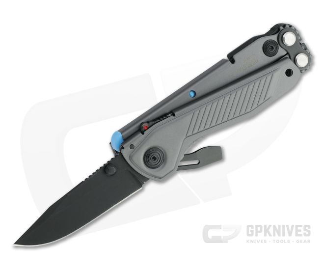 Built for efficiency and compact carry the SOG Flash MT comes equipped with the Compound Leverage system powerful gripping power and effective cutting of wire. Opposite the pliers head is a magnetic hex bit holder for use with the included two-sided bit or any compatible 4 mm bit. The removable pocket clip offer secure carry, bottle opener/flathead and assisted black oxide cryo D2 tool steel blade round out this versatile multi-tool. This version comes in the Urban Gray + Cyan colorway.