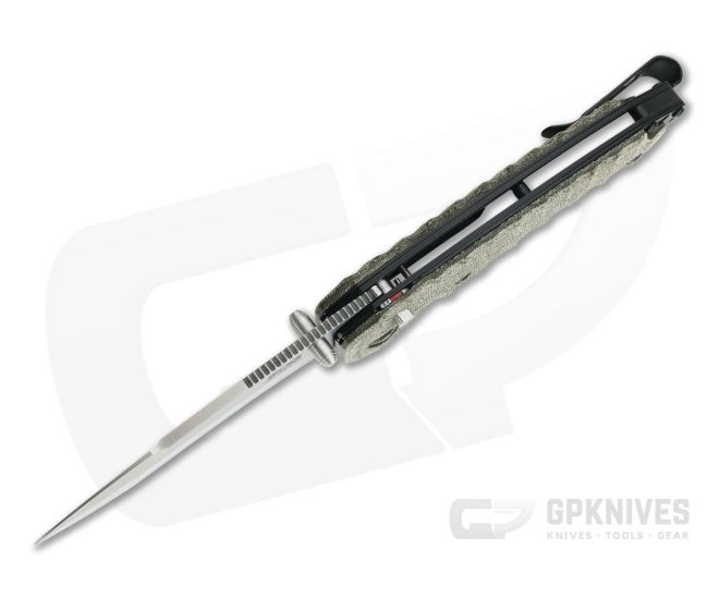 Blade:Â Made from premium, American CPM-S35VN stainless steel, the blade has an iconic Matsuda style: Compound ground, recurve Tanto with a harpoon swedge. The Tanto point is flat ground for durability with enhanced piercing performance from the harpoon swedge while the hollow ground recurve slices aggressively. Finished with a beautiful, bi-directional satin the blade rockets out via dual thumb studs powered by the S.A.T. assist with a slide safety on the spine of the handle preventing unintentional deployment during carry. Jimping on the spine provides added traction on this decisively tactical blade.