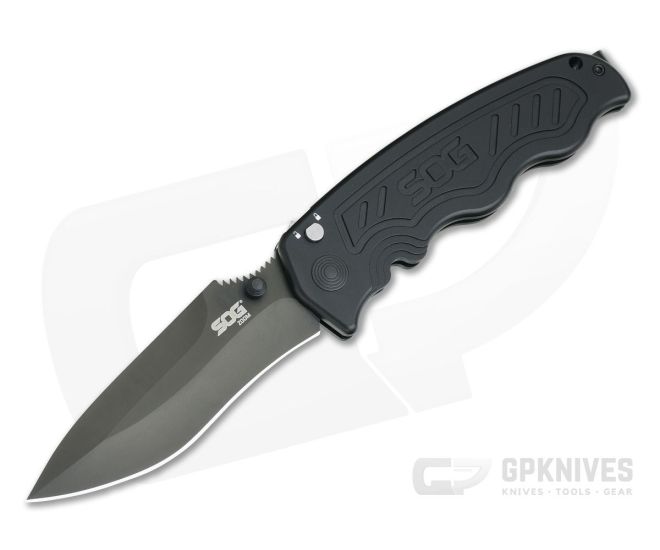 The SOG Zoom series offers lightweight, compact folding knives that utilize the SOG Assisted Technology, delivering a blade that opens quickly with press on either of the dual thumb studs. Stalwart stainless steel liners support hard anodized aluminum handles for a strong, durable foundation with contoured finger grooves for a secure, comfortable grip. This version comes with a black, plain edge AUS-8 stainless steel blade and black aluminum handle.