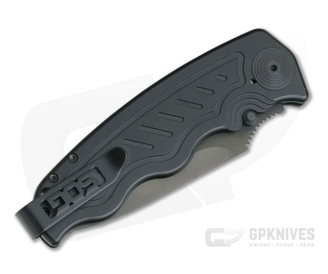 Handle:Â Lightweight and durable, the black hard anodized 6061-T6 aluminum handles have been contoured for comfort and have milling and finger grooves for a secure grip. A simple yet robust button lock mechanism delivers secure lockup with a slide safety on the spine to avoid unintentional deployment while carrying yet allowing for fast deployment when needed.