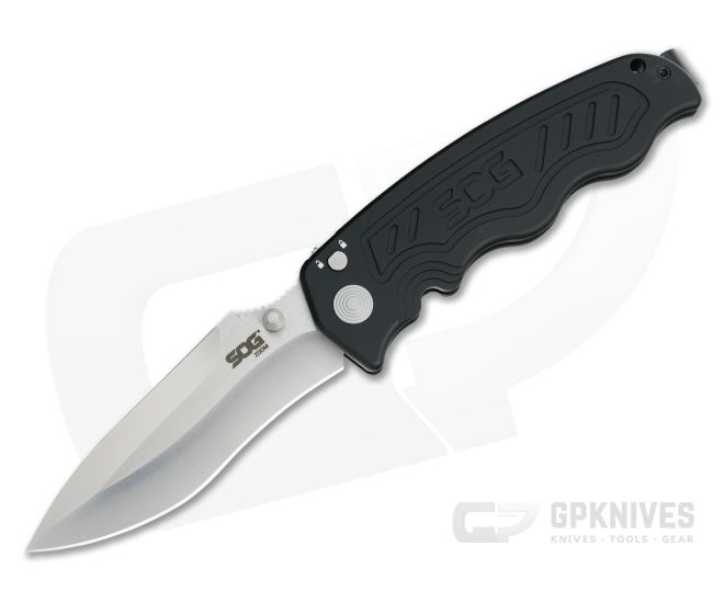 The SOG Zoom series offers lightweight, compact folding knives that utilize the SOG Assisted Technology, delivering a blade that opens quickly with press on either of the dual thumb studs. Stalwart stainless steel liners support hard anodized aluminum handles for a strong, durable foundation with contoured finger grooves for a secure, comfortable grip. This version comes with a satin, plain edge AUS-8 stainless steel blade and black aluminum handle.