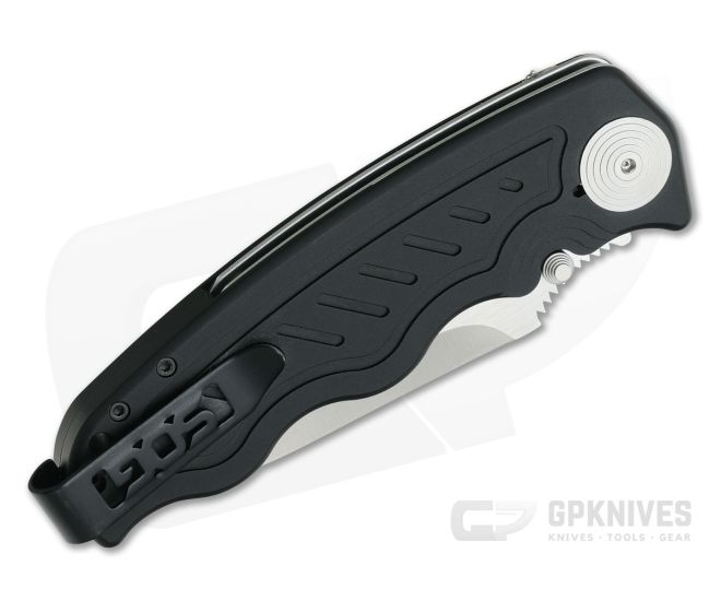 Handle:Â Lightweight and durable, the black hard anodized 6061-T6 aluminum handles have been contoured for comfort and have milling and finger grooves for a secure grip. A simple yet robust button lock mechanism delivers secure lockup with a slide safety on the spine to avoid unintentional deployment while carrying yet allowing for fast deployment when needed.