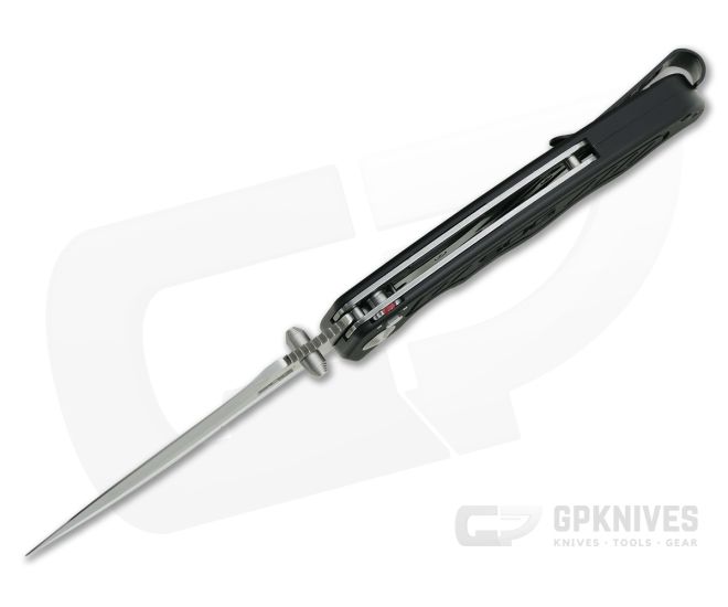 Blade:Â Durable, corrosion resistant Japanese AUS-8 stainless steel is finished with striking satin finish. A spear point profile is executed with a false edge and high hollow ground recurve edge to provide exceptionally powerful piercing and slicing performance while retaining good toughness. Aggressive jimping on the thumb scoop insures a safe and secure grip during heavy use. Powered by a coil spring mechanism the blade deploys with lightening quickness via the dual thumb studs for ambidextrous operation.