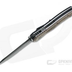 Handle:Ā Two thick stainless-steel liners form the foundation of this tactical EDC. Sweeping, ergonomic lines pair with strategic jimping and textured G10 scales for a secure and comfortable grip in hand. The factory front scale (included) has been replaced by a contoured and milled brown, black, and tan G10 scale for enhanced comfort and traction. The steel liner lock is rock solid and secure with smooth, reliable operation.